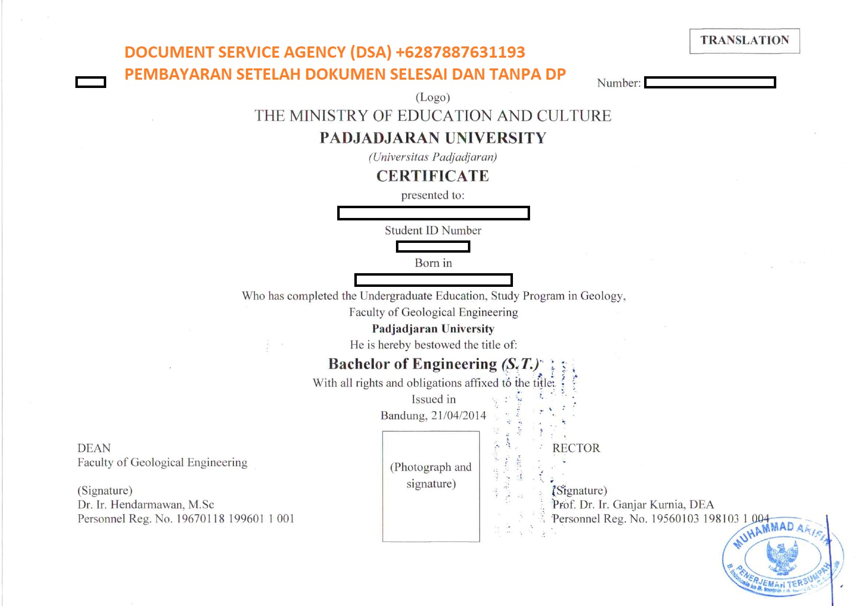 Telp/ Whatsapp : 021 48671259/ +62 878 8763 1193 atau email : documentsserviceagency@gmail.com