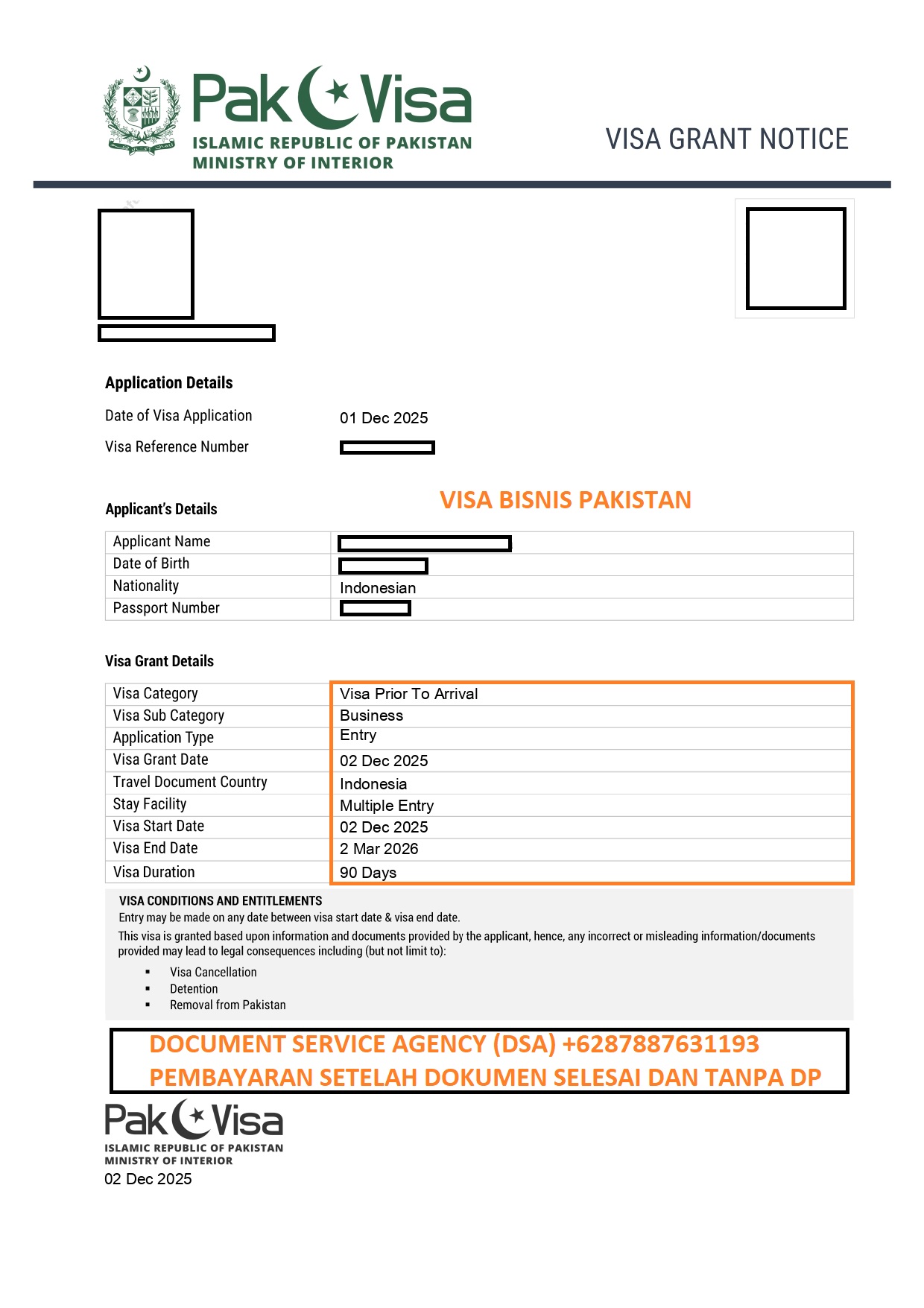 DSA (Document Service Agency) adalah spesialis jasa terjemah, legalisir, atestasi, apostile dokumen untuk keperluan di luar negeri dan pengurusan visa berpengalaman dan terpercaya. Bagi anda yang ingin mengurus visa Pakistan di Kedutaan Pakistan Jakarta untuk keperluan berlibur, bisnis dan lain-lain. Percayakan pengurusan visa anda kepada kami. Anda tidak perlu menghabiskan banyak waktu untuk membuat appointment.